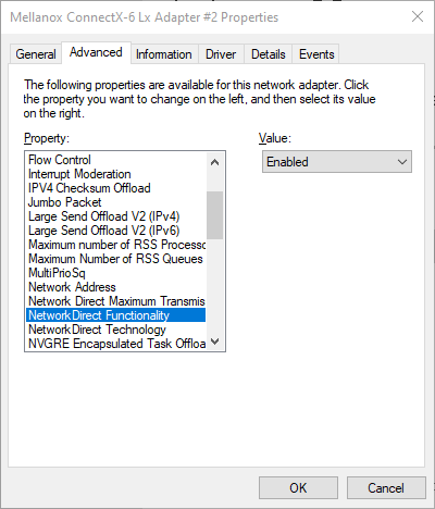 There are other configuration settings for RDMA capable Ethernet adapters which must be assured to be set correctly.