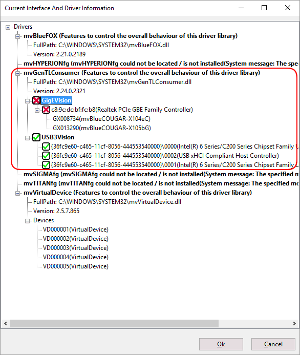 The GenTL producer scans both the GigE Vision™ and the USB3 Vision™ interfaces for compliant devices. Given that the GigE Vision™ standard allows detection timeouts of 1000 ms, it could take long, especially for USB3 Vision™ users which even do not have GigE Vision™ in their application, until the device update is finished.