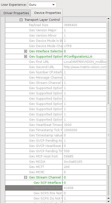 Now, select the "Setting → Base → Camera → GenICam" section and open the "Transport Layer Control" subsection (using the device specific interface: "System Settings" and "TransportLayer").