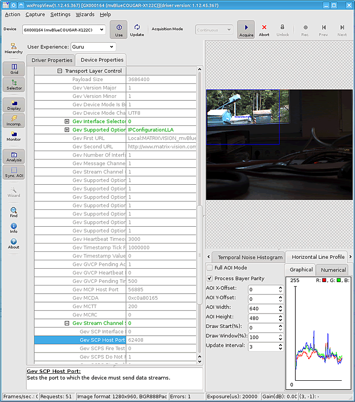 Once the primary application starts to request images, the secondary applications will be able to receive these images as well. Please click on "Use" and then "Acquire" ("Acquisition Mode" = "Continuous").