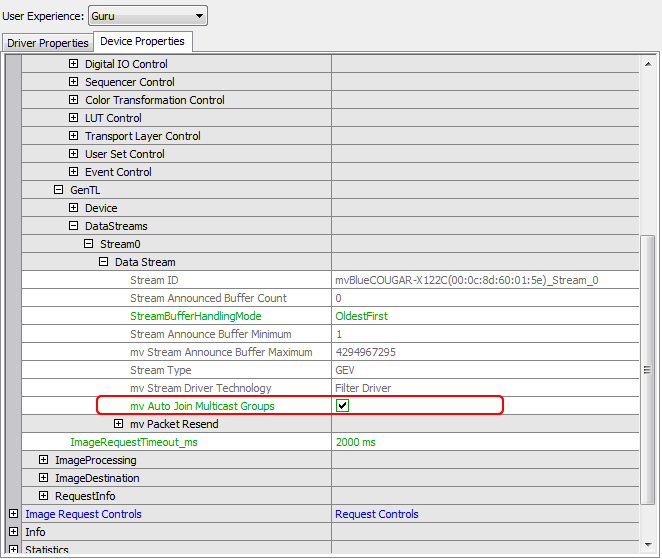 - The machine that has "Control" access automatically joins the streaming multicast group of the camera it is controlling. If this is not desired, the "mv Auto Join Multicast Groups" property has to be set to false.